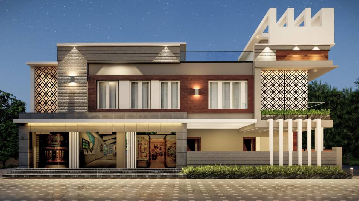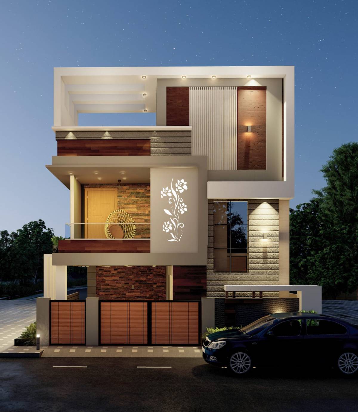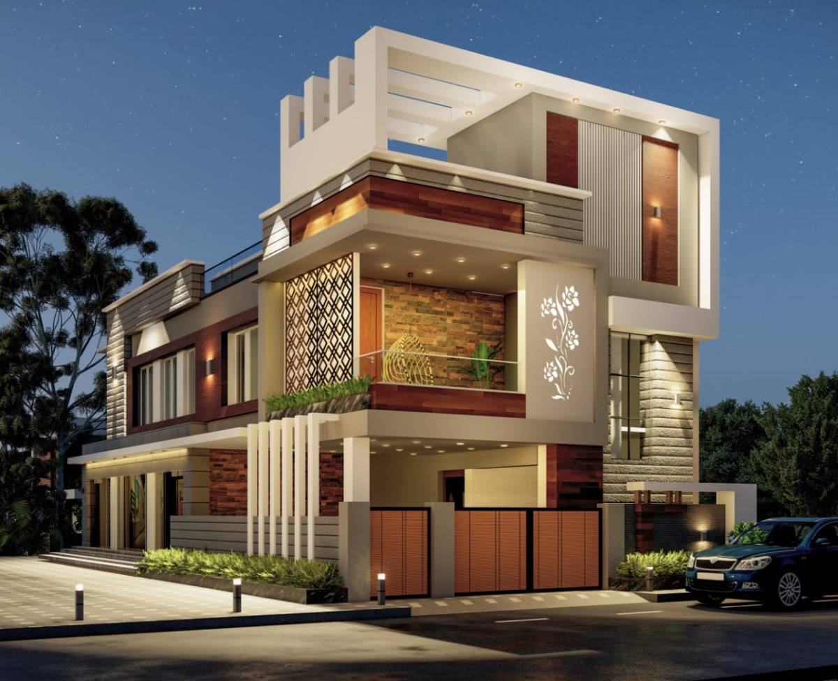 A premium residential facade combining textured stone, high-end finishes, and carefully planned lighting. This design emphasizes elegance and sophistication, reflecting the client’s unique style while ensuring durability and visual appeal.