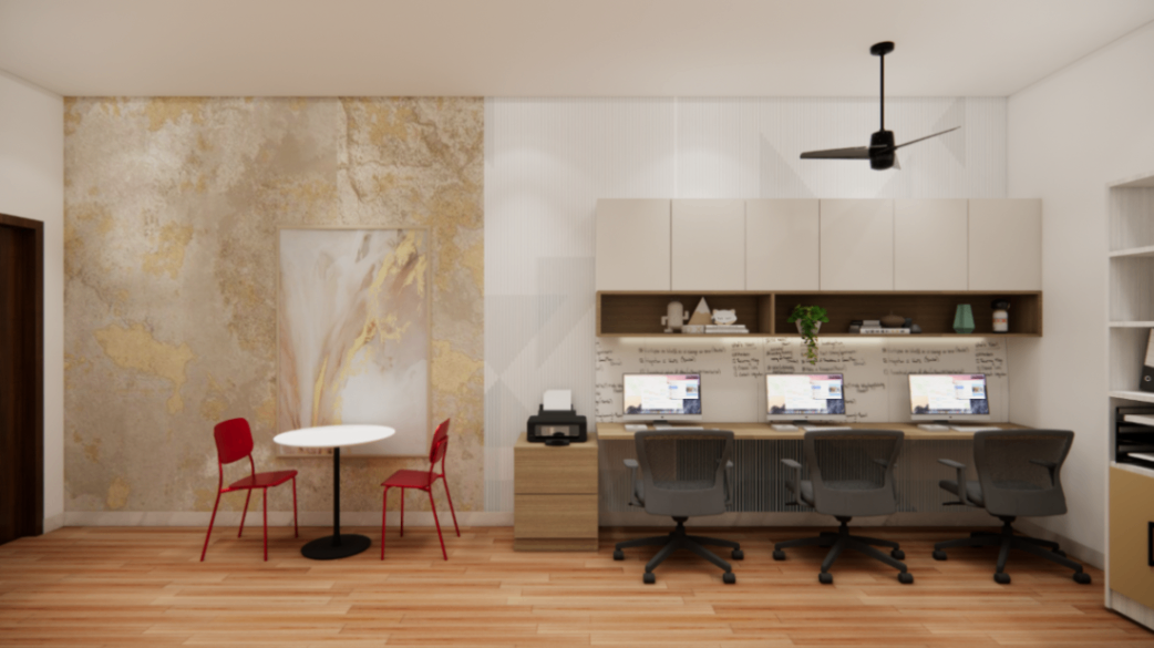 Our office interior design portfolio represents a fusion of modern aesthetics and strategic functionality. Using advanced 3D visualization techniques, we create workspaces that inspire productivity, encourage collaboration, and showcase cutting-edge design. Each project is crafted with meticulous attention to detail and quality finishes.